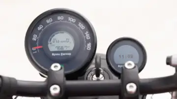 The digital section shows essential information such as fuel level, trip meters and odometer readings. On higher variants, the motorcycle also supports Royal Enfield's tripper navigation pod, which provides turn-by-turn navigation when connected to a smartphone.