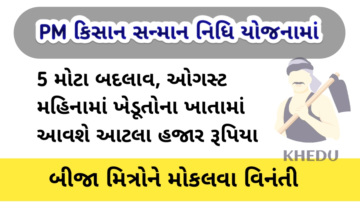 પ્રધાનમંત્રી કિસાન સન્માન નિધિ યોજનાનો અમલ થયો ત્યારથી, તેમાં પાંચ મોટા ફેરફારો થયા છે. જો તમે તેમના વિશે જાણી લેશો તો તમને ફાયદો થશે. જો તેમે આ માહિતીને અપડેટ રાખશો તો તમને વાર્ષિક 6000 રૂપિયા મેળવવા માટે મદદ મળશે. યોજના અંતર્ગત અત્યાર સુધીમાં 10 કરોડ 10 લાખ ખેડૂતો રજીસ્ટર્ડ થઇ ચુક્યા છે. 2000 રૂપિયાનો છઠ્ઠા હપ્તો 1 ઓગસ્ટથી આ તમામ ખેડૂત ભાઈઓના બેંક ખાતામાં આવવાનું શરૂ થશે.