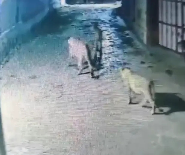 ગીરની સરહદે આવેલા ધારી તાલુકાના વાઘાવડી ગામમાં ગઈ રાત્રે સિંહોનું મોટું ટોળું આવી ચડતાં ફફડાટ ફેલાયો છે. શિકારની શોધમાં એકસાથે ૯ સિંહો ગામમાં લટાર મારતા જોવા મળ્યા હતા. સિંહોની આ સહેલગાહ ગામમાં લાગેલા સીસીટીવી કેમેરામાં કેદ થઈ ગઈ છે. ગામની શેરીઓમાં રાજવી અદાથી ફરતા વનરાજોના આ દ્રશ્યો સોશિયલ મીડિયામાં પણ વાયરલ થયા છે. જોકે, એકસાથે આટલી મોટી સંખ્યામાં સિંહો ગામમાં આવી ચડતાં સ્થાનિક ગ્રામજનોમાં ભારે ભયનો માહોલ જોવા મળી રહ્યો છે.