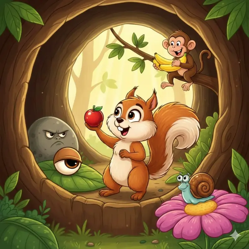 એક ઝમકું નામની ખિસકોલી હતી. ઝમકું એટલી ઝડપી દોડતી કે જોનારાની આંખો ચમકી ઊઠે! એ આખો દિવસ 'ઝૂંઉમમમ… ઝૂંઉમમમ..!' કરતી એક ડાળ પરથી બીજી ડાળ અને એક ઝાડ પરથી બીજા ઝાડ પર દોડાદોડ કરતી રહેતી. ઝમકું બહુ શોખીન હતી. એમાંય એને ખાવાનો ઘણો શોખ! ખાસ કરીને એને ગોળ-ગોળ વસ્તુઓ બહુ ભાવતી. એમાંય એને સૌથી પ્રિય મીઠાં નાનકડાં બોર! એક સવારે ઊઠી અને એને અચાનક યાદ આવ્યું કે એણે ગઈકાલે રાત્રે એનું સૌથી પ્રિય એવું એકદમ લાલચટ્ટાક મોટું ગોળ-ગોળ બોર ક્યાંક સંતાડ્યું હતું.