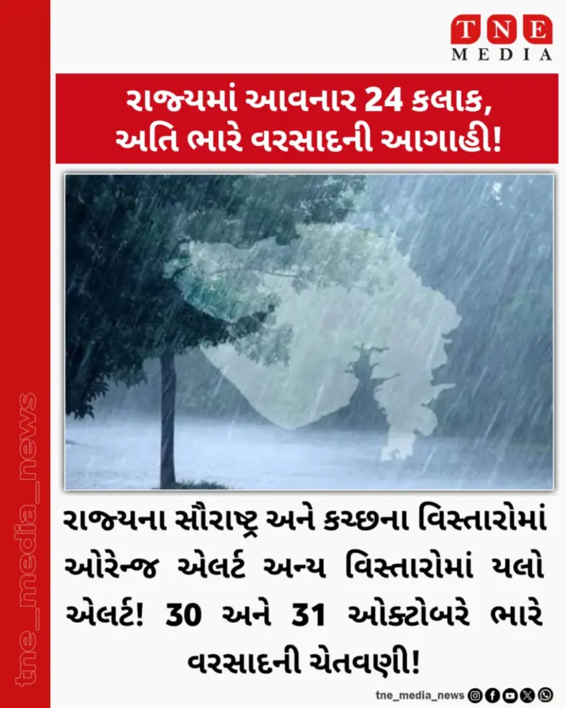 રાજ્યમાં આવનાર 24 કલાક, અતિ ભારે વરસાદની આગાહી!