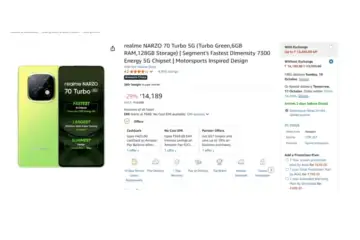Photo Credit: Amazon डील में इतना सस्ता हो गया रियलमी नार्जो 70 टर्बो 5जी फोन