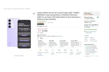 वहीं, रियलमी नार्जो 80 लाइट 5जी मोबाइल को अमेजन की सेल में 35 फीसदी कम प्राइस पर लिस्ट किया गया है। ऐसे में इसका दाम 14999 रुपये निर्धारित किया गया है। हालांकि, ग्राहकों को इसके लिए 9799 रुपये का भुगतान करना होगा। साइट पर इस फोन को भी 4.2 स्टार रेटिंग प्राप्त हुई है।