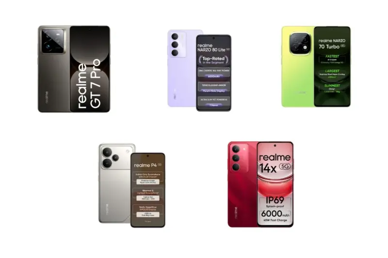 अमेजन पर रियलमी के 5 दमदार फोन बढ़िया डिस्काउंट के साथ मिल रहे हैं। इसमें रियलमी जीटी 7 प्रो 5जी समेत एक से बढ़कर एक रियलमी फोन शामिल है। इसके अलावा इन डील्स में कई अन्य ऑफर्स भी लिए जा सकते हैं।