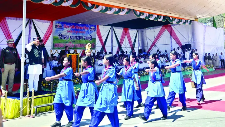 मंडी में हिमाचल दिवस समारोह पर तिरंगा फहराया गया।