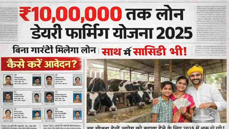 पशुपालकों और ग्रामीण युवाओं को प्रोत्साहित करने के लिए सरकार ने डेयरी फार्मिंग लोन योजना 2026 के तहत नियमों को और भी सरल बना दिया है। अब आप बिना किसी बड़ी गारंटी के अपना खुद का डेयरी बिजनेस शुरू कर सकते हैं।डेयरी फार्मिंग लोन: क्या है सरकार की योजना?सरकार नाबार्ड (NABARD) और विभिन्न सरकारी बैंकों के माध्यम से डेयरी क्षेत्र को मजबूत कर रही है। इस योजना का मुख्य उद्देश्य पशुपालकों को आधुनिक तकनीक और अच्छी नस्ल के पशु खरीदने के लिए आर्थिक संबल देना है।लोन की राशि और सब्सिडी का गणितलोन की सीमा: छोटे स्तर पर डेयरी शुरू करने के लिए ₹10 लाख तक का लोन आसानी से उपलब्ध है। बड़े प्रोजेक्ट्स के लिए यह राशि और भी अधिक हो सकती है।सबिडी का लाभ: इस योजना की सबसे बड़ी खासियत इसकी सब्सिडी है:सामान्य वर्ग (General): 25% तक की सब्सिडी।SC/ST और महिला उद्यमी: 33.33% तक की भारी सब्सिडी।ब्याज दर: कृषि ऋण होने के कारण इसकी ब्याज दरें काफी कम (लगभग 7% से 12% सालाना) होती हैं।[Image showing a modern dairy farm with high-yield cows and automated milking machines]लोन का उपयोग आप कहाँ-कहाँ कर सकते हैं?इस लोन राशि का इस्तेमाल आप निम्नलिखित कार्यों के लिए कर सकते हैं:पशुओं की खरीद: अच्छी नस्ल की गाय (जैसे- गिर, साहीवाल) या भैंस (मुर्रा) खरीदने के लिए।शेड निर्माण: पशुओं के रहने के लिए हवादार और आधुनिक शेड बनाने हेतु।मशीनरी: दूध निकालने की मशीन, चारा काटने की मशीन और मिल्क चिलिंग यूनिट के लिए।वर्किंग कैपिटल: पशुओं के चारे, दवाओं और टीकाकरण के खर्च के लिए।पात्रता मापदंड (Eligibility Criteria)आवेदक: व्यक्तिगत किसान, उद्यमी, स्वयं सहायता समूह (SHG), और दुग्ध सहकारी समितियां।आयु: आवेदक की उम्र कम से कम 18 वर्ष होनी चाहिए।अनुभव: हालांकि अनिवार्य नहीं, लेकिन पशुपालन का बुनियादी ज्ञान होने पर लोन मिलने में आसानी होती है।जरूरी दस्तावेज (Document Checklist)आवेदन के लिए इन कागजातों को तैयार रखें:पहचान पत्र: आधार कार्ड, पैन कार्ड या वोटर आईडी।निवास प्रमाण: राशन कार्ड या मूल निवास प्रमाण पत्र।जमीन के कागज: जहाँ डेयरी फार्म बनाना है, उस जमीन के दस्तावेज (खतौनी)।प्रोजेक्ट रिपोर्ट: डेयरी फार्म का एक संक्षिप्त बिजनेस प्लान (कितने पशु होंगे, कितना दूध निकलेगा आदि)।बैंक स्टेटमेंट: पिछले 6 महीने का लेनदेन रिकॉर्ड।आवेदन कैसे करें? (Step-by-Step)बैंक जाएं: अपने नजदीकी सरकारी, ग्रामीण या सहकारी बैंक (जैसे- SBI, PNB, BOB) की शाखा में जाएं।योजना की जानकारी: ‘डेयरी एंटरप्रेन्योरशिप डेवलपमेंट स्कीम’ (DEDS) या संबंधित राज्य योजना के बारे में पूछें।फॉर्म भरें: लोन आवेदन फॉर्म भरें और अपनी प्रोजेक्ट रिपोर्ट के साथ जरूरी दस्तावेज संलग्न करें।सत्यापन: बैंक अधिकारी आपके फार्म की लोकेशन और दस्तावेजों का भौतिक सत्यापन (Verification) करेंगे।स्वीकृति: सब कुछ सही पाए जाने पर लोन मं