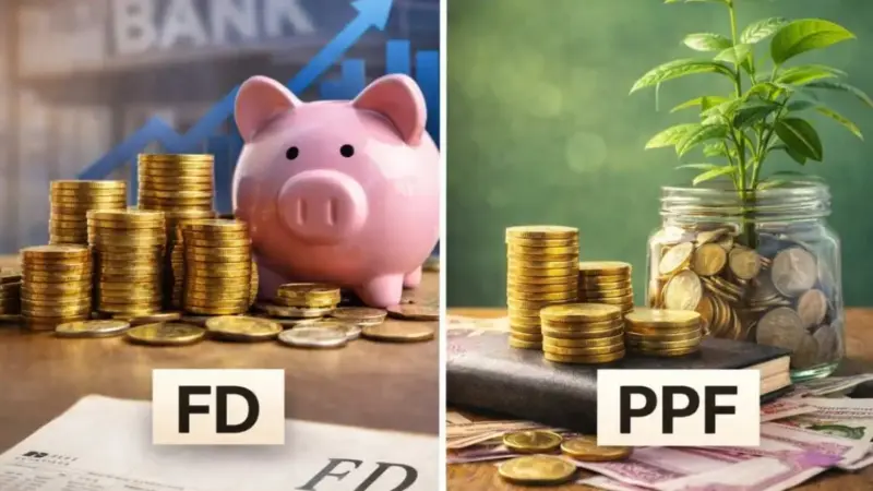 फिक्स्ड डिपॉजिट में आपको तय समय के लिए फिक्स्ड ब्याज मिलता, जो 1 महीने से लेकर 10 साल तक के लिए हो सकता। इसमें रिटर्न पहले से तय होता, इसलिए यह सुरक्षित निवेश माना जाता। वहीं पीपीएफ में ब्याज दर सरकार तय करती और यह सालाना कंपाउंड होती है। इसकी दर एफडी से थोड़ी कम हो सकती लेकिन यह पूरी तरह सरकारी गारंटी के साथ आती।
