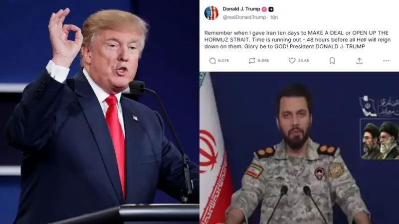 गौरतलब है कि अमेरिकी राष्ट्रपति डोनाल्ट ट्रंप ने अपने सोशल मीडिया प्लेटफॉर्म 'ट्रुथ सोशल' पर एक पोस्ट के जरिए कहा कि ईरान के पास समझौते के लिए बहुत ही कम समय शेष रह गया है. वह या तो समझौता करे या तो होर्मुज खेले. अगर ऐसा नहीं होता तो 48 घंटे बाद यह उन पर कहर बनकर टूटेगा. बता दें अमेरिका ने ईरान ने को समझौते के लिए 10 दिनों का समय दिया था.
