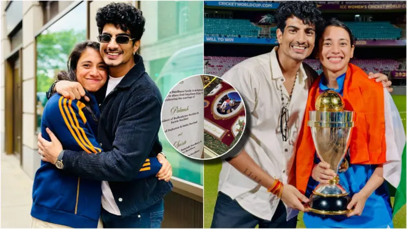 दरअसल, अब सोशल मीडिया पर उनके वेडिंग कार्ड की तस्वीर वायरल हो रही है। कार्ड में शादी की डेट और लोकेशन का जिक्र है, जिसके अनुसार कपल 20 नवंबर को शादी के बंधन में बंधेंगे। शादी स्मृति के होमटाउन संगली, महाराष्ट्र में होने की खबर है।