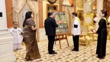 भारतीय दूतावास ने इस मुलाकात की तस्वीरें साझा करते हुए लिखा कि किंग और क्वीन ने राजदूत से मुलाकात की, जिन्होंने थाईलैंड में अपना समय पूरा होने पर विदाई ली। इस तस्वीर में एक अजीबोगरीब नजारा देखने को मिला जो इस वक्त चर्चा का केंद में है।