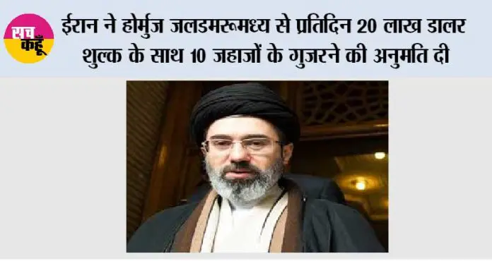 तेहरान (एजेंसी)। ईरान ने होर्मुज जलडमरुमध्य से प्रतिदिन लगभग 10 जहाजों को गुजरने की अनुमति देने का फैसला किया है, जिसमें सुपरटैंकर के लिए शुल्क 20 लाख डॉलर तक हो सकता है। यह जानकारी वॉल स्ट्रीट जनरल ने अपनी एक रिपोर्ट में दी।