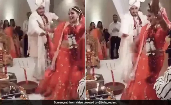 ಸಪ್ತಪದಿ ತುಳಿಯುವ ವೇಳೆ ವಧು - ವರ ನೃತ್ಯ ಮಾಡಿದ್ದು ಈ ವಿಡಿಯೋ ಸಾಮಾಜಿಕ ಜಾಲತಾಣದಲ್ಲಿ ಸಖತ್ ವೈರಲ್ ಆಗಿದೆ. ಟ್ವಿಟರ್ನಲ್ಲಿ ಈ ವಿಡಿಯೋವನ್ನ ಬಿರ್ಲಾ ಕಂಪನಿಯ ಚೇರ್ಮನ್ ಹಾಗೂ ಎಂಡಿ ವೇದಾಂತ್ ಬಿರ್ಲಾ ಶೇರ್ ಮಾಡಿದ್ದಾರೆ.