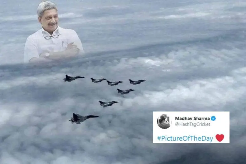 ಕ್ಯಾನ್ಸರ್ ಜೊತೆಗೆ ಹೋರಾಟ ಮಾಡುತ್ತಾ ಅಕಾಲಿಕ ಮರಣಕ್ಕೆ ಈಡಾದ ಪರಿಕ್ಕರ್ ಚಿತ್ರವನ್ನು ಆಗಸದಿಂದ ಅವರು ರಫೇಲ್ಗಳು ಹಾರಿಕೊಂಡು ಭಾರತಕ್ಕೆ ಬರುತ್ತಿರುವುದನ್ನು ನೋಡುತ್ತಿರುವಂತೆ ಮಾರ್ಫ್ ಮಾಡಿ ಹಾಕಲಾಗಿದ್ದು, ಈ ಚಿತ್ರಕ್ಕೆ ಭಾವಪೂರ್ಣ ಪ್ರತಿಕ್ರಿಯೆ ಸಿಕ್ಕಿದೆ.