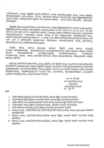 ಮೇಲಿನಂತೆ ಶಾಲೆಗಳಲ್ಲಿ ಮುಖ್ಯ ಶಿಕ್ಷಕರ, ಸಹ ಶಿಕ್ಷಕರ ಮತ್ತು ಸಿಬ್ಬಂದಿಗಳು ಶಾಲಾವಧಿಯಲ್ಲಿ ತರಗತಿಗಳಿಗೆ ಗೈರುಹಾಜರಾಗಿ ಮಕ್ಕಳ ಶೈಕ್ಷಣಿಕ ಹಿನ್ನೆಡೆಗೆ ಕಾರಣರಾಗಿ ಕರ್ತವ್ಯಲೋಪವೆಸಗುವ ದೂರುಗಳು ಸ್ವೀಕೃತವಾದಲ್ಲಿ ಸಂಬಂಧಿಸಿದ ಶಿಕ್ಷಕರು, ಮುಖ್ಯ ಶಿಕ್ಷಕರು ಹಾಗೂ ಸಂಬಂಧಿಸಿದ ವ್ಯಾಪ್ತಿಯ ಮೇಲುಸ್ತುವಾರಿ ಅಧಿಕಾರಿಗಳನ್ನು ಹೊಣೆಗಾರನ್ನಾಗಿಸಿ ಗಂಭೀರ ಶಿಸ್ತು ಕ್ರಮಗಳನ್ನು ಕೈಗೊಳ್ಳಲಾಗುವುದು ಎಂಬುದಾಗಿ ಎಚ್ಚರಿಕೆ ನೀಡುತ್ತಾ ಕಟ್ಟು ನಿಟ್ಟಿನ ಸೂಚನೆ ನೀಡಿದೆ.