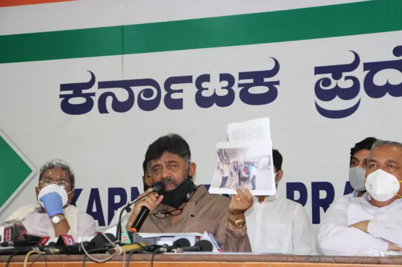 ಶನಿವಾರ ನಗರದ ಕ್ವೀನ್ಸ್ ರಸ್ತೆಯಲ್ಲಿರುವ ಕೆಪಿಸಿಸಿ ಕಚೇರಿ ಆವರಣದಲ್ಲಿ ವಿರೋಧ ಪಕ್ಷದ ನಾಯಕ ಸಿದ್ದರಾಮಯ್ಯ ಸೇರಿದಂತೆ ಇನ್ನಿತರ ಮುಖಂಡರ ಜೊತೆ ಕಾಂಗ್ರೆಸ್ ಕೇರ್ಸ್ ಆಂಬ್ಯುಲೆನ್ಸ್ ಗಳಿಗೆ ಚಾಲನೆ ನೀಡಿದ ಬಳಿಕ ಜಂಟಿ ಪತ್ರಿಕಾಗೋಷ್ಠಿಯನ್ನುದ್ದೇಶಿಸಿ ಅವರು ಮಾತನಾಡಿದರು.