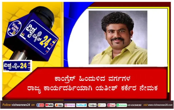 ಉಡುಪಿ : ಉಡುಪಿ ಜಿಲ್ಲಾ ಹಿಂದುಳಿದ ವರ್ಗಗಳ ವಿಭಾಗದ ಅಧ್ಯಕ್ಷರಾಗಿದ್ದ ಯತೀಶ್ ಕರ್ಕೆರರವರನ್ನು ರಾಜ್ಯ ಕಾಂಗ್ರೆಸ್ ವರಿಷ್ಠರ ನಿರ್ದೇಶನದ ಮೇರೆಗೆ ಪಕ್ಷದ ಹೆಚ್ಚಿನ ಸಂಘಟನಾ ದೃಷ್ಠಿಯಿಂದ ಕರ್ನಾಟಕ ಪ್ರದೇಶ ಕಾಂಗ್ರೆಸ್ ಸಮಿತಿಯ ಹಿಂದುಳಿದ ವರ್ಗಗಳ ವಿಭಾಗದ ರಾಜ್ಯ ಪ್ರಧಾನ ಕಾರ್ಯದರ್ಶಿಗಳಾಗಿ ತಕ್ಷಣದಿಂದ ಜಾರಿಗೆ ಬರುವಂತೆ ನೇಮಕ ಮಾಡಿ ಆದೇಶ ಹೊರಡಿಸಲಾಗಿದೆ ಎಂದು ಉಡುಪಿ ಜಿಲ್ಲಾ ಕಾಂಗ್ರೆಸ್ ಸಮಿತಿ ಅಧ್ಯಕ್ಷರಾದ ಅಶೋಕ್ ಕುಮಾರ್ ಕೊಡವೂರು ಪ್ರಕಟಣೆಯಲ್ಲಿ ತಿಳಿಸಿದ್ದಾರೆ