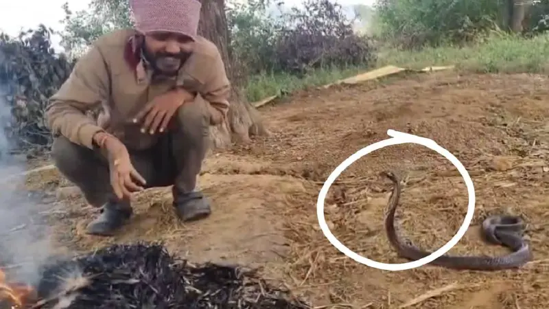 ವೀಡಿಯೊದಲ್ಲಿ ವ್ಯಕ್ತಿ ಬೆಂಕಿಯ ಬಳಿ ಶಾಂತವಾಗಿ ಕುಳಿತಿರುವುದನ್ನು ಮತ್ತು ಅವನ ಪಕ್ಕದಲ್ಲಿ ಕಪ್ಪು ನಾಗರಹಾವು ಇರುವುದನ್ನು ಕಾಣಬಹುದು. ಆದರೆ ಆ ವ್ಯಕ್ತಿ ಅದರೊಂದಿಗೆ ಹಾಸ್ಯಮಯ ಮತ್ತು ಸ್ನೇಹಪರ ರೀತಿಯಲ್ಲಿ ಮಾತನಾಡುತ್ತಾನೆ. ವ್ಯಕ್ತಿಯು ಚಳಿ ಕಾಯಿಸುತ್ತಾ ಹಾವನ್ನುದ್ದೇಶಿಸಿ, "ನೋಡು, ನಿನಗೆ ತೊಂದರೆಯಾಗಬಾರದು ಎಂದು ಇಲ್ಲಿ ಕೂರಿಸಿದ್ದೇನೆ. ಸುಮ್ಮನೆ ಶಾಂತವಾಗಿ ಕುಳಿತು ಬೆಂಕಿ ಕಾಯಿಸಿಕೊ, ಯಾರಿಗೂ ತೊಂದರೆ ಮಾಡಬೇಡ ಎಂದು ಹೇಳುತ್ತಿರುವುದು ಕೇಳಿಸುತ್ತದೆ.