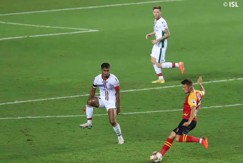 ദേബ്ജിതിന്റെ വണ് ഹാന്റ് സേവുകള് ഈസ്റ്റ് ബംഗാളിന് തുണയാവുകയും ചെയ്തു. കളിയുടെ ആദ്യ പകുതി അവസാനത്തോടടുക്കെ ബല്വന്ദിന് ലഭിച്ച ഒരു സുവര്ണാവസരം നഷ്ടമാക്കുകയും ചെയ്തു. റോബിഫൗളറുടെ ഈസ്റ്റ് ബംഗാള് തന്നെയാണ് ആദ്യ പകുതി അവസാനിക്കുമ്ബോള് കളിക്കളത്തില് ഡോമിനേറ്റ് ചെയ്തത്.