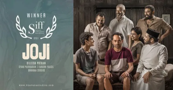 ഫഹദ് ഫാസിലും ദിലീഷ് പോത്തനും ഒരുമിച്ച ഹിറ്റ് ചിത്രമായ ജോജിക്ക് സ്വീഡിഷ് ഇന്റര്നാഷണല് ഫിലിം ഫെസ്റ്റിവലില് (SIFF) 'ബെസ്റ്റ് ഇന്റര്നാഷണല് ഫീച്ചര് ഫിലിം' പുരസ്ക്കാരം.