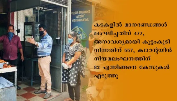 മാസ്ക് ധരിക്കാത്ത 8,133 പേര്ക്കെതിരെയും കടകളില് രജിസ്റ്ററുകള് സൂക്ഷിക്കാത്തതിന് 5,863 കേസുകളും എടുത്തിട്ടുണ്ട്. സെക്ടര് മജിസ്ട്രറ്റുമാര് സര്ക്കാര് തീരുമാനപ്രകാരം കോവിഡ് പ്രതിരോധ പ്രവര്ത്തനങ്ങളില് ഏര്പ്പെടുന്നവരാണെന്നും അവര് ജനങ്ങളുടെ ആരോഗ്യ സംരക്ഷണത്തിനും രോഗവ്യാപനം ചെറുക്കാനും ചുമതലപ്പെട്ടവരാണന്നും കലക്ടര് അറിയിച്ചു.
