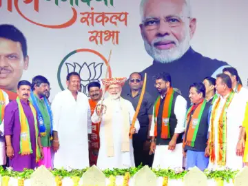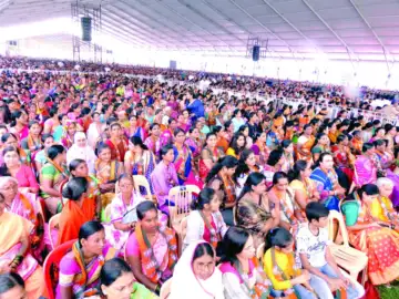 पंतप्रधान नरेंद्र मोदी यांच्या सभेसाठी जिल्ह्यातून मोठ्या प्रमाणात उपस्थित राहिलेल्या महिला.