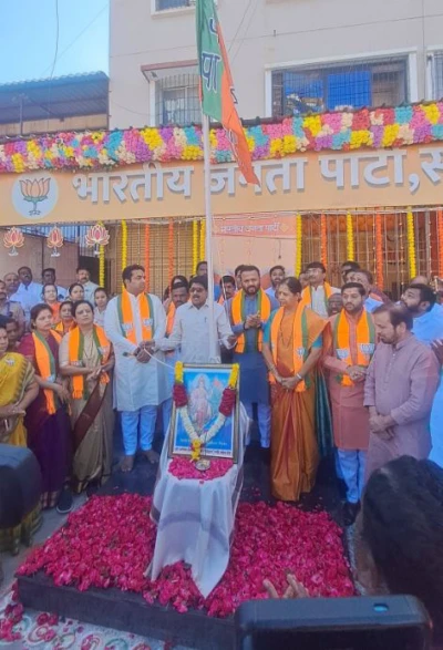 तसेच शहरातील सर्व नगरसेवक, नगरसेविका, मंडळ अध्यक्ष आणि भाजपचे पदाधिकारी व कार्यकर्ते मोठ्या संख्येने उपस्थित होते.कार्यक्रमादरम्यान पक्षाच्या स्थापनेपासून आतापर्यंतच्या वाटचालीचा आढावा घेण्यात आला. यावेळी मान्यवरांनी भारतीय जनता पक्षाच्या विचारसरणी, संघटनशक्ती आणि देशाच्या विकासात दिलेल्या योगदानावर प्रकाश टाकला. तसेच आगामी काळात पक्ष अधिक बळकट करण्यासाठी सर्वांनी एकजुटीने काम करण्याचा संकल्प व्यक्त करण्यात आला.कार्यक्रमाचा समारोप राष्ट्रगीताने करण्यात आला. संपूर्ण कार्यक्रम उत्साहपूर्ण आणि प्रेरणादायी वातावरणात पार पडला.