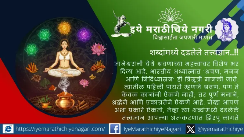 ज्ञानेश्वरांनी येथे श्रवणाच्या महत्त्वावर विशेष भर दिला आहे. भारतीय अध्यात्मात 'श्रवण, मनन आणि निदिध्यासन' ही त्रिसूत्री मानली जाते. त्यातील पहिली पायरी म्हणजे श्रवण. पण ते केवळ कानांनी ऐकणे नाही; तर पूर्ण मनाने, श्रद्धेने आणि एकाग्रतेने ऐकणे आहे. जेव्हा आपण अशा प्रकारे ऐकतो, तेव्हा त्या शब्दांमध्ये दडलेले तत्त्वज्ञान आपल्या अंतःकरणात झिरपू लागते.