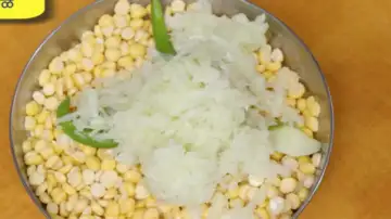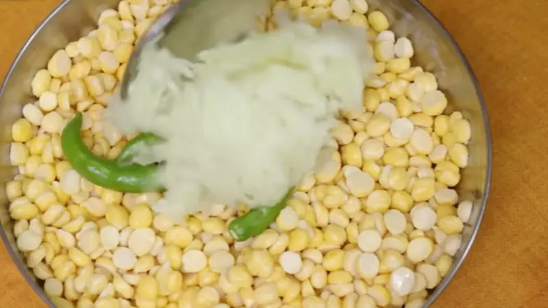 डाळ भिजल्यावर, भांड्यातील पाणी सावधपणे काढून टाका. लक्ष ठेवा की डाळ पूर्णपणे कोरडी होऊ नये; थोडे पाणी थोड्या प्रमाणात राहू शकते, त्यामुळे डाळ नंतर जास्त घट्ट होणार नाही. या टप्प्यावर डाळ तयार आहे पुढील वाटण्याची आणि परतण्याची प्रक्रिया सुरू करण्यासाठी.