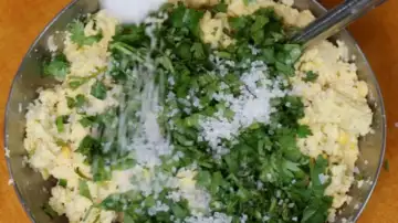 भिजवलेली हरभऱ्याची डाळ आता वाटण्याच्या टप्प्यावर आहे. या टप्प्यावर डाळ मऊ पण घट्ट राहिली पाहिजे. डाळ वाटताना त्यात चार हिरव्या मिरच्या आणि 2 चमचे कैरीचा किस घाला. हिरव्या मिरच्या डाळीला थोडी तिखटपणा आणि ताजगी देतात, तर कैरीचा किस डाळीला हलकी चटपटीत, खमंग चव आणतो. सर्व घटक मिक्सरमध्ये जाडसर वाटा, म्हणजे डाळ फार बारीक किंवा पेस्टसारखी होऊ नये. डाळ थोडी घट्टसर राहिली पाहिजे, ज्यामुळे ती नंतर परतताना योग्य टेक्स्चर मिळेल आणि पारंपरिक वाटली डाळची चव टिकते.