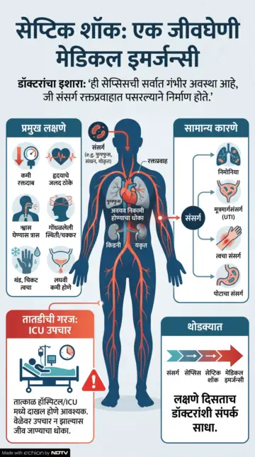 डॉक्टरने सांगितलं की, "सेप्टिक शॉक एक जीवघेणी मेडिकल इर्मजन्सी आहे, जी सेप्सिसचे एक गंभीर रुप घेऊ शकते; ही परिस्थिती शरीरातील संसर्गामुळे निर्माण होणाऱ्या सूज वाढल्याने निर्माण होते. ही सेप्सिसची सर्वात गंभीर अवस्था मानली जाते. संसर्ग रक्तप्रवाहामध्ये पसरून शरीराच्या महत्त्वपूर्ण अंगापर्यंत ऑक्सिजन आणि पोषणतत्त्वांच्या पुरवठ्याची प्रक्रिया प्रभावित करते. यामुळे शरीराचे महत्त्वाचे अवयव फुफ्फुस, किडनी आणि यकृतापर्यंत रक्तपुरवठा होण्यास अडथळे होतात, ज्यामुळे अवयव काम करणं बंद करू शकतात आणि मृत्यू देखील होऊ शकतो"