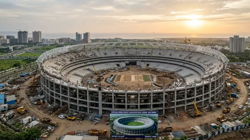 Mumbai New Cricket Stadium : क्रिकेटवेड्या मुंबईकरांसाठी एक अतिशय आनंदाची आणि अभिमानाची बातमी आहे. मुंबईच्या शिरपेचात लवकरच आणखी एक मानाचा तुरा रोवला जाणार आहे. मुंबई महानगर प्रदेशात म्हणजेच एमएमआर क्षेत्रात तब्बल 1 लाख प्रेक्षक क्षमतेचे भव्य क्रिकेट स्टेडियम उभारण्याच्या हालचालींना वेग आला आहे.