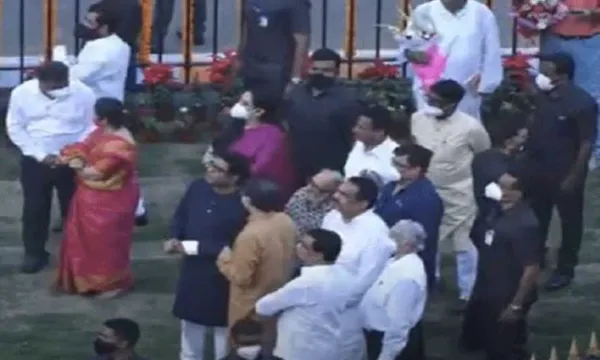 मुंबई : पोलीसनामा ऑनलाईन - शिवसेनाप्रमुख बाळासाहेब ठाकरे यांच्या पुर्णाकृती पुतळ्याचे अनावरण शनिवारी (दि. 23) संपन्न झाले. बाळासाहेब ठाकरे यांच्या पुर्णाकृती पुतळ्याच्या निमित्ताने उद्धव ठाकरे आणि राज ठाकरे हे दोन्ही भाऊ ब-याच दिवसानंतर पुन्हा एकाच कार्यक्रमात दिसून आले. त्यांनी आनंदाने एकमेकांशी साधलेला संवाद सर्वांचे लक्ष वेधून घेत होता. महाविकास आघाडीचे नेतृत्व उद्धव ठाकरे करीत आहेत. तर सरकारवर टीका करण्याची कोणतीही संधी मनसे सोडत नाही. त्याताच आता महानगरपालिका निवडणूका तोंडावर आल्याने राजकीय टीका टिपण्णीसुद्दा शिवसेना आणि मनसेमध्ये सुरू आहे. परंतु बाळासाहेब ठाकरेंच्या पुतळा अनावणाच्या कार्यक्रमात दोन्ही भाऊ आनंदाने संवाद सांधत असल्याचे दिसले.