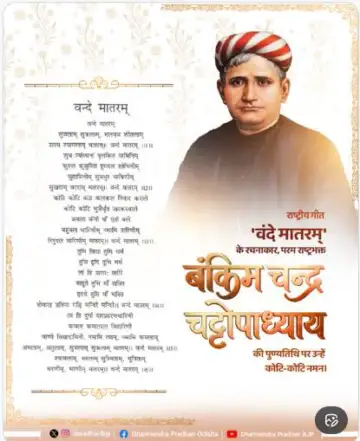 ସୋସିଆଲ ମିଡିଆ ଏକ୍ସରେ କେନ୍ଦ୍ରମନ୍ତ୍ରୀ କହିଛନ୍ତି ଯେ, 'ବନ୍ଦେ ମାତରମ୍'ର ସୃଷ୍ଟା ଏବଂ ପରମ ଦେଶଭକ୍ତ ବଙ୍କିମ
