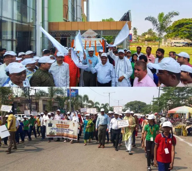 ଭଦ୍ରକ, ୪ା୪ (ଓଡ଼ିଆ ପୁଅ / ସ୍ନିଗ୍ଧା ରାୟ) – ଓଡ଼ିଆ ପକ୍ଷ ପାଳନ ଅବସରରେ ଭଦ୍ରକ ଜିଲ୍ଲା ପ୍ରଶାସନ ଓ ଜିଲ୍ଲା ଶ୍ରମ ବିଭାଗ ତରଫରୁ ଆଜି ବିଭିନ୍ନ ଦୋକାନ ଓ ବାଣିଜ୍ୟିକ ଅନୁଷ୍ଠାନରେ ଓଡ଼ିଆ ଭାଷାରେ ନାମଫଳକ ପ୍ରଦର୍ଶନ ପାଇଁ ସଚେତନତା ପଦଯାତ୍ରା ଆୟୋଜିତ ହୋଇଯାଇଛି। ଏହି ପଦଯାତ୍ରାକୁ ଜିଲ୍ଲାପାଳ ଦିଲ୍ଲୀପ ରାଉତରାଏ ଓ ପୌରପାଳିକା ଅଧ୍ୟକ୍ଷା ଗୁଲମକୀ ଦଲୱାଜି ହବିବଙ୍କ ଦ୍ୱାରା ସକାଳ ୯ଟାରେ ଜିଲ୍ଲାପାଳଙ୍କ କାର୍ଯ୍ୟାଳୟରୁ ଶୁଭାରମ୍ଭ କରାଯାଇଥିଲା।