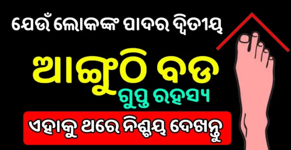 ୧- ଯେଉଁ ବ୍ୟକ୍ତି ର ପାଦର ପ୍ରଥମ ଆଙ୍ଗୁଳି କୁ ଛାଡି ତାହା ପାଖରେ ଥିବା ଆଙ୍ଗୁଳି ଅଧିକ ଲମ୍ବା ହୋଇଥାଏ, ଏବଂ ଅନ୍ୟ ୩ ଟି ଆଙ୍ଗୁଳି ଛୋଟ ହୋଇଥାଏ, ଏହିଭଳି ବ୍ୟକ୍ତି ବିଶେଷ ବହୁତ ଊର୍ଜାବାନ ହୋଇଥାଏ । ସାଧାରଣତ ଏମାନଙ୍କୁ କିଛି ନୂତନ କାର୍ଯ୍ୟ କରୁବାକୁ ବହୁତ ଭଲ ଲାଗିଥାଏ ।