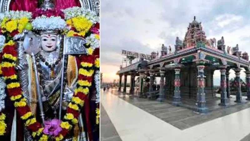 நெடிதுயர்ந்த கோயில் கோபுரம்மும்மூர்த்திகள் அருளும் தலமாக விளங்கும் இந்தக் கோயில் கருவறையில் எண்கோணம் அமைத்து அதன் மேல் கருவறை கோபுரம், ஏழு நிலை ராஜகோபுரம் எண்பது அடி உயரத்தில் கம்பீரமாகக் காட்சி தருகிறது. கோயிலின் மகாமண்டபத்தில் பஞ்சபூதங்களை உணர்த்தும் தத்துவத்தில் ஐந்து வாசல்களும் அர்த்தமண்டபத்தில் எங்கும் காண முடியாத 36 முகம் அமைந்த வெள்ளியிலான பிரம்மாண்ட சண்முக சக்கரமும் உள்ளது விசேஷம்.