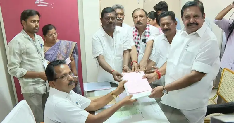 சேலம் மாவட்டம் எடப்பாடி தாலுகா அலுவலகத்தில் எடப்பாடி தொகுதியில் இன்று 8-வது முறையாக வேட்பு மனு தாக்கல் செய்துள்ளார். முன்னதாக எடப்பாடி சட்டமன்ற தொகுதியில் 1989, 1991, 2011, 2016, 2021 தேர்தல்களில் பழனிசாமி வெற்றி பெற்றுள்ள நிலையல் இன்று தனது வேட்புமனுவை தாக்கல் செய்துள்ளார்.