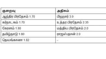 சில மாநிலங்களின் இப்போதைய கருவுறு விகிதம் (ஆதாரம் தேசிய குடும்ப நல சுகாதார கணக்கெடுப்பு-5) கூறும் உண்மையை கீழ்க்காணும் பட்டியல் காட்டுகிறது...