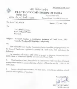 தமிழகத்தில் ஏப்ரல் 23ஆம் தேதி சட்டசபை தேர்தல் நடைபெற உள்ளது. இதனை முன்னிட்டு தேர்தல் விதிமுறைகள் அமலான நிலையில் முக்கிய அதிகாரிகள் மற்றும் போலீஸ் அதிகாரிகளை தேர்தல் ஆணையம் மாற்றி வருகிறது.