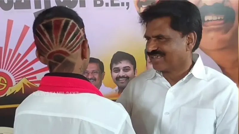 அந்த வகையில், நாமக்கல் மாவட்டம் திருச்செங்கோட்டைச் சேர்ந்த இளைஞர் ஒருவர், திமுக மீதான தனது தீவிரப் பற்றை வெளிப்படுத்தும் விதமாகத் தனது தலையின் பின்புறத்தில் 'உதயசூரியன்' சின்னம் வடிவிலேயே தலைமுடியை வெட்டி, அதற்கு வர்ணம் பூசி அனைவரையும் வியப்பில் ஆழ்த்தியுள்ளார். சலூன் கடையில் பல மணிநேரம் பொறுமையாக அமர்ந்து, மிகத் துல்லியமான கலைநயத்துடன் செதுக்கப்பட்ட இந்த நூதனப் பிரச்சாரத்தைக் காண அந்தப் பகுதியில் மக்கள் கூட்டம் அலைமோதி வருகிறது.