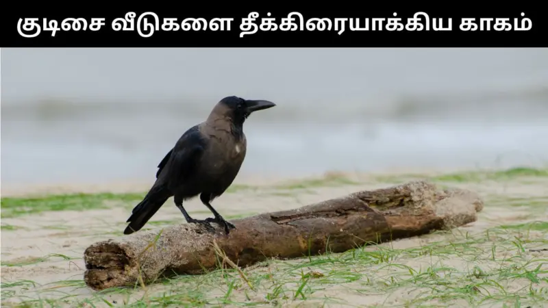 நான்கு குடிசை வீடுகளை தீக்கிரையாக்கிய காகம்