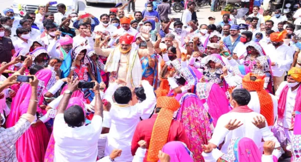 జనగామ: జిల్లాలోని పాలకుర్తి మండల కేంద్రంలో భారీ ఎత్తున జరిగిన గిరిజనుల ఆరాధ్య దైవం సేవాలాల్ మహారాజ్ జయంతి ఉత్సవాలు సోమవారంతో ముగిశాయి. ఈ ఉత్సవాలకు జిల్లా నుంచే కాకుండా రాష్ట్రంలోని పలు ప్రాంతాల నుంచి వందల సంఖ్యలో గిరిజనులు ఉత్సవాలకు హాజరయ్యారు. ముగింపు రోజున రాష్ట్ర పంచాయితీరాజ్, గ్రామీణాభివృద్ధిశాఖ మంత్రి ఎర్రబెల్లిదయాకర్రావు ఉత్సవాలకు హాజరై సందడి చేశారు. ఈ సందర్భంగా మంత్రి గిరిజనులతో కలిసి ఆడిపాడారు. వారితో డాన్స్చేస్తూస్టెప్పులు వేయడంతో ఆయన అభిమానులు, పార్టీ కార్యకర్తలు ఈలలు,చప్పట్లతో అభినందించారు. గిరిజనులు ఎంతో ఆనందోత్సహాల మధ్య ఈ ఉత్సవాలు జరుపుకోవడం సంతోషకరమని ఈసందర్భంగా మంత్రి ఎర్రబెల్లి పేర్కొన్నారు.