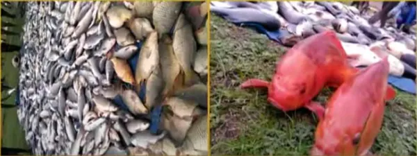 కరీంనగర్ జిల్లా: తిమ్మాపూర్ మండల కేంద్రంలో మత్స్యకారుల పంటపండింది. రామన్నపేట చెరువులో మత్స్యకారులకు బంగారు తీగ జాతికి చెందిన మూడు చేపలు వలకు చిక్కాయి. లేత ఎరుపు వర్ణంలో ఉండడంతో వాటిని కొనేందుకు పోటీ పడ్డారు. వలలో ఇలాంటి చేపలు పడడం అరుదని... బంగారు తీగ జాతికి మంచి డిమాండ్ ఉంటుందని మత్స్యకారులు తెలిపారు. బంగారు తీగ జాతితోపాటు మొత్తం 20 క్వింటాళ్ల చేపలు వలకు చిక్కాయి. చేపలు కొనేందుకు ప్రజలు పోటీ పడ్డారు.