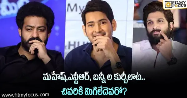 'ఆర్.ఆర్.ఆర్' పూర్తయిన వెంటనే రాజమౌళి.. మహేష్ బాబుతో సినిమా చేయబోతున్నట్లు అనౌన్స్ చేసాడు.దానికంటే ముందే త్రివిక్రమ్ తో ఓ సినిమా చెయ్యాలని మహేష్ భావిస్తున్నాడు. ఇదిలా ఉండగా.. అదే 'ఆర్.ఆర్.ఆర్' పూర్తయిన తరువాత ఎన్టీఆర్.. త్రివిక్రమ్ డైరెక్షన్లో సినిమా చెయ్యాలి అనుకున్నాడు. కానీ అనూహ్యంగా కొరటాల శివతో సినిమా చెయ్యబోతున్నట్టు అనౌన్స్ చేసాడు ఎన్టీఆర్. అయితే కొరటాల శివతో సినిమా చెయ్యబోతున్నట్టు గతేడాదే అల్లు అర్జున్ అనౌన్స్ చేసాడు. దాంతో ఈ ముగ్గురి హీరోల మధ్య కుర్చీల ఆట మొదలైనట్టు అందరికీ ఓ అవగాహన వచ్చేసింది.