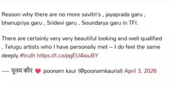 మహిళల సమస్యలపై సోషల్ మీడియా వేదికగా గళమెత్తే పూనమ్ కౌర్ ఈ వీడియోపై అత్యంత ఘాటుగా స్పందించారు. "తెలుగు చిత్ర పరిశ్రమలో ఇప్పుడు సావిత్రి గారు, జయప్రద గారు, భానుప్రియ, శ్రీదేవి, సౌందర్య వంటి గొప్ప నటీమణులు ఎందుకు లేరో చెప్పడానికి బలమైన కారణం ఉంది. నేను వ్యక్తిగతంగా కలిసిన ఎంతోమంది తెలుగు నటీమణులు అద్భుతమైన అందం, నైపుణ్యం కలిగి ఉన్నారు. కానీ ఇండస్ట్రీలో ఉన్న పరిస్థితుల కారణంగానే వారికి సరైన గుర్తింపు రావడం లేదు. ఇది అక్షర సత్యం" అంటూ పూనమ్ పేర్కొన్నారు.
