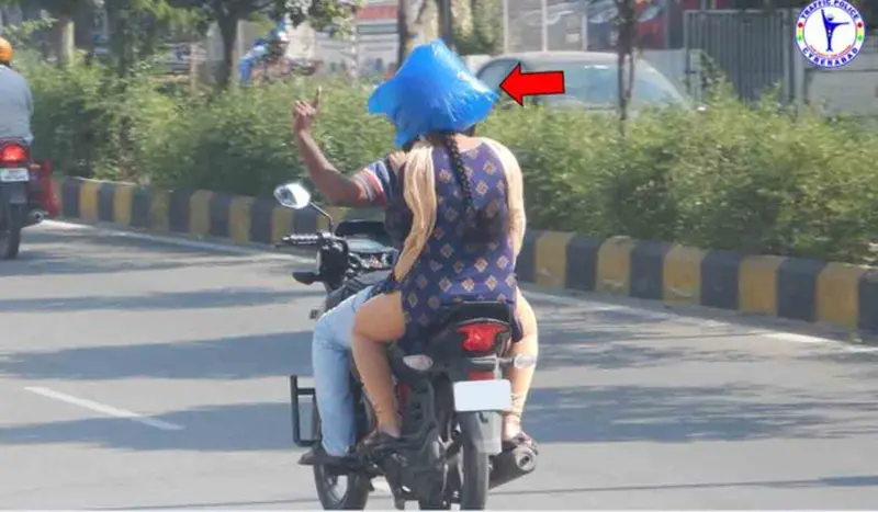 అయితే సైబరాబాద్ పరిధిలో ఓ మహిళ బైక్పై వెనుకాల కూర్చొని, తన తలకు ప్లాస్టిక్ కవర్ను చుట్టుకుంది. ఈ ఫోటోను సైబరాబాద్ ట్రాఫిక్ పోలీసులు ట్వీట్ చేశారు. హెల్మెట్ ఫుల్ కవర్ అయి ఉండాలి అన్నారు కానీ కవర్ ని హెల్మెట్ లా వాడమనలేదు అని పోలీసులు ట్వీట్లో రాశారు. హెల్మెట్ పెట్టుకోండి.. సురక్షితంగా ఉండండి.. అని పోలీసులు సూచించారు.