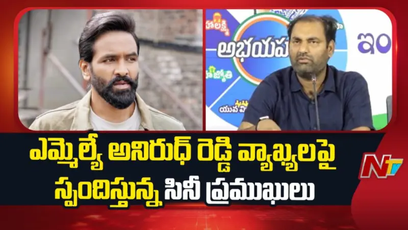టాలీవుడ్ హీరోలు ప్రతి 90 రోజులకు ఒకసారి డ్రగ్స్ టెస్ట్ చేయించుకోవాలని, అందులో నెగటివ్ వచ్చిన వాళ్ళ సినిమాలే రిలీజ్ చేసేలా చట్టం తీసుకురావాలంటూ కాంగ్రెస్ ఎమ్మెల్యే అనిరుధ్ రెడ్డి చేసిన కామెంట్స్ కి తెలుగు సినీ పరిశ్రమ ప్రముఖులు స్పందిస్తున్నారు; అనిరుధ్ రెడ్డికి కౌంటర్లు ఇస్తున్నారు.