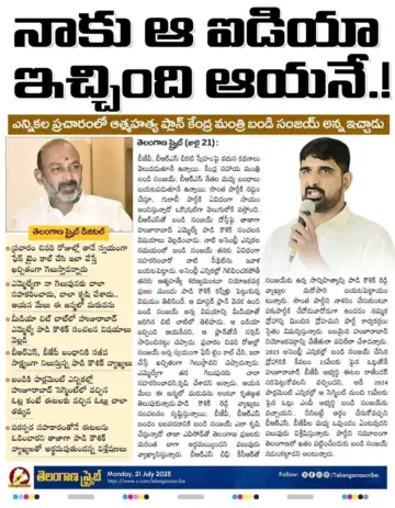 బండి సంజయ్ వ్యాఖ్యలపై మల్కాజ్గిరి ఎంపీ ఈటల రాజేందర్ కూడా స్పందించారు. ఇటీవల తనను కలిసిన హుజూరాబాద్ నేతలతో సమావేశమయ్యారు. ఈ సందర్భంగా తన గురించి తప్పుగా మాట్లాడేవారికి, తప్పుడు ప్రచారం చేసేవారి గట్టి వార్నింగ్ ఇచ్చారు. హుజూరాబాద్ తన అడ్డా అని స్పష్టం చేశారు. స్థానిక సంస్థల ఎన్నికల్లో సత్తా చూపుతానని తెలిపారు.
