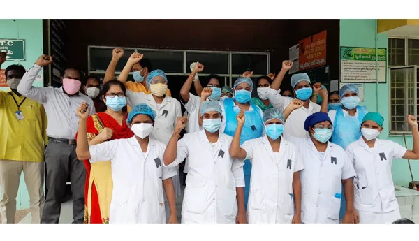 పట్టణంలోని నర్సాపురం ప్రభుత్వ ఆసుపత్రి లో పనిచేస్తున్న మెడికల్ కాంట్రాక్ట్ ఉద్యోగులు కాంట్రాక్ట్ మెడికల్ సిబ్బందిని పర్మినెంట్ చేయాలని కోరుతూ సోమవారం ధర్నా నిర్వహించారు. ఈ సందర్భంగా ప్రభుత్వ ఆసుపత్రి స్టాఫ్ నర్స్ లు, ఐసిటిసి సెంటర్ సిబ్బంది మాట్లాడుతూ కాంట్రాక్ట్ సిబ్బంది 15 సంవత్సరాల నుండి పని చేస్తూన్నారు. కానీ ఇప్పటి వరకు వారి ఉద్యోగాలు పర్మినెంట్ అవ్వలేదని ఉద్యోగుల నియమక ప్రక్రియ మొత్తం కూడా నోటిఫికేషన్ ద్వారా వ్రాతపూర్వక పరీక్షలు వ్రాసి మరియు ఇంటర్వ్యూలో సెలెక్ట్ అయ్యి పూర్తి అర్హతతో కాంట్రాక్ట్ ఉద్యోగులుగా గత 15 సంవత్సరాల నుండి కాంటాక్ట్ పద్దతిలో పని చేస్తున్నామని ప్రభుత్వం వెంటనే ఆంధ్రప్రదేశ్ ప్రభుత్వ ఆసుపత్రులలో పనిచేస్తున్న మెడికల్ కాంట్రాక్ట్ ఉద్యోగులందరిని పర్మినెంట్ చేయాలని కోరుతూ నిరసన తెలియజేసారు.
