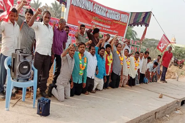 శ్రీకాకుళం : అరబిందో కార్మికుల సమస్యలను పరిష్కరించాలని, అక్రమంగా తొలగించిన కార్మికులను వెంటనే విధుల్లోకి తీసుకోవాలని డిమాండ్ చేస్తూ... బుధవారం ఉదయం సిఐటియు ఆధ్వర్యంలో పైడిభీమవరంలో అరబిందో కార్మికులు మోకాళ్లపై కూర్చొని ధర్నా చేపట్టారు. అరబిందో కార్మికుల సమస్యల్ని పరిష్కరించాలని డిమాండ్ చేశారు.